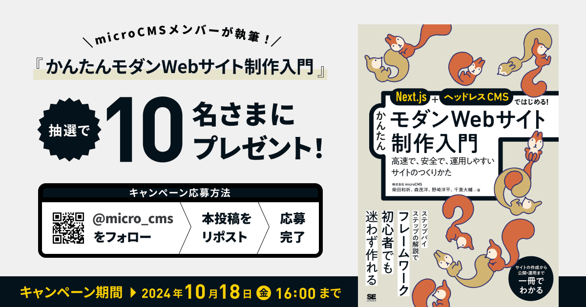 - microCMSメンバー執筆の書籍『かんたんモダンWebサイト制作入門』プレゼントキャンペーン開催!